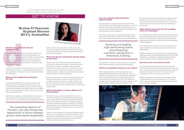 The transition from Meriam ’ s role as a Channel Lead to a Sales Director has given her valuable strengths for this position . She has gained a deep understanding of customer needs and market dynamics through building strong channel relationships in the META region . This knowledge allows her to tailor solutions to meet specific customer requirements finely . market conditions . Lastly , her extensive background in sales and security management at major corporations positions her to contribute to driving revenue growth and achieving SentinelOne ’ s sales objectives effectively .