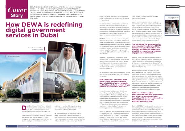 DEWA( Dubai Electricity and Water Authority) has achieved a major milestone in digital service adoption, enabling millions of seamless transactions across its platforms. HE Saeed Mohammed Al Tayer, MD and CEO of DEWA, tells us how the authority is using AI, innovative digital solutions and strategic integrations to enhance customer experiences, reduce bureaucracy and support Dubai’ s wider sustainability and Smart City goals.