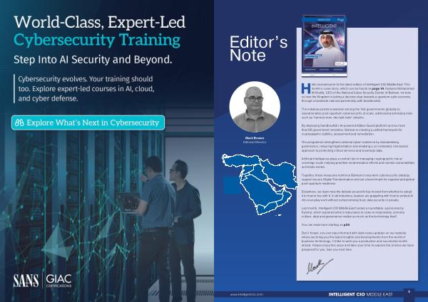 Hello and welcome to the latest edition of Intelligent CIO Middle East. This month’ s cover story, which can be found on page 14, features Mohammed Al Khalifa, CEO of the National Cyber Security Center of Bahrain. He tells us how the Kingdom is taking a decisive step towards a quantum-safe economy through a landmark national partnership with SandboxAQ.