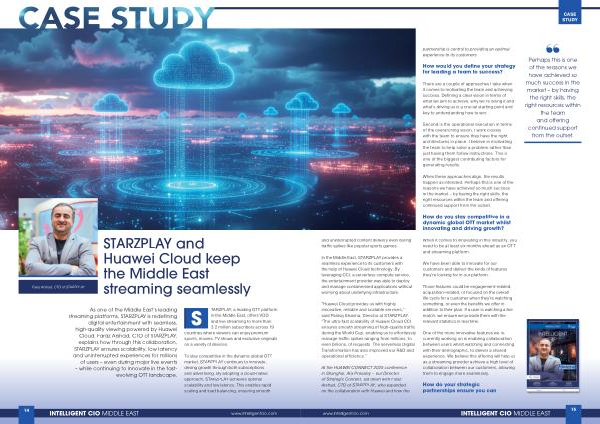 As one of the Middle East’ s leading streaming platforms, STARZPLAY is redefining digital entertainment with seamless, high-quality viewing powered by Huawei Cloud. Faraz Arshad, CTO of STARZPLAY, explains how through this collaboration, STARZPLAY ensures scalability, low latency and uninterrupted experiences for millions of users – even during major live events – while continuing to innovate in the fastevolving OTT landscape.
