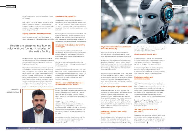 Fully autonomous, large-scale humanoid deployments are still on the horizon. Today’ s robots operate in pilots or supervised demos, but early efforts highlight the flexibility, reusability and labour-scaling potential humanoids can bring. p