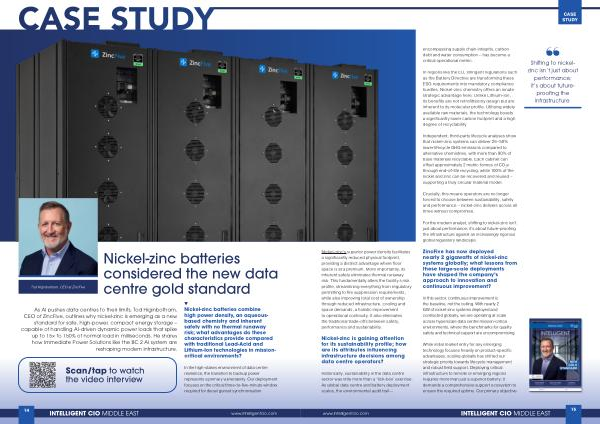 As AI pushes data centres to their limits, Tod Higinbotham, CEO of ZincFive, outlines why nickel-zinc is emerging as a new standard for safe, high-power, compact energy storage – capable of handling AI-driven dynamic power loads that spike up to 15 × to 150 % of normal load in milliseconds. He shares how Immediate Power Solutions like the BC 2 AI system are reshaping modern infrastructure.