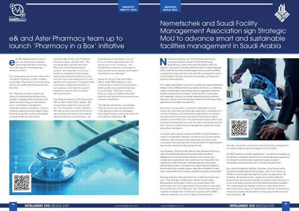 Eng. Ayed bin Awad Al-Qahtani, Chairman of the Board of the Saudi Facility Management Association, said:“ Our mission at SFMA is to set the gold standard for facility management in the Kingdom. By partnering with a global technology leader like Nemetschek, we are ensuring that our professionals have access to the most advanced tools and international expertise available. This collaboration will catalyse innovation, drive research and, most importantly, equip our national talent with the competencies required to manage the Kingdom’ s mega-projects with precision and excellence.” • www. intelligentcio. com