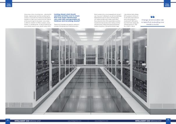 FINAL WORD it becomes a form of architecture – planning the design, engineering it and then producing the solution. It’ s all planned, tested and integrated together to make sure it works from the cabinet all the way through to the power. Every setup is different, whether it’ s PDUs, busbars, power shelves, or anything else; it’ s about making sure your solution works in your specific data centre.