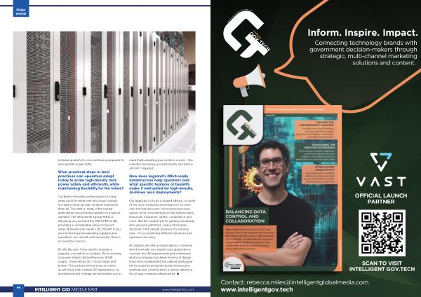 At Legrand, we offer a trusted advisor; someone who’ ll work with you, inspect your applications, consider the kW requirements and understand what you’ re trying to achieve in terms of design. Once this is established, the cabinet and busbar will be acquired along with power shelves and anything else, whether that’ s a typical cabinet or the AI open compute infrastructure. •